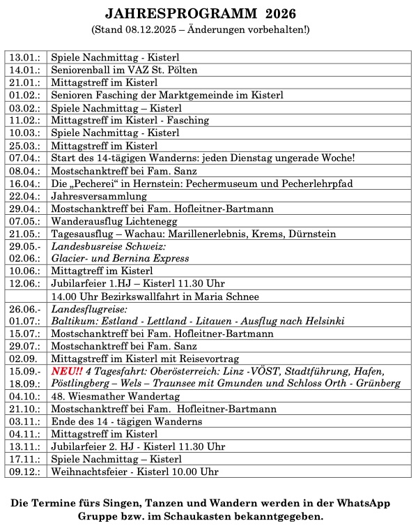 Jahresprogramm 2026
